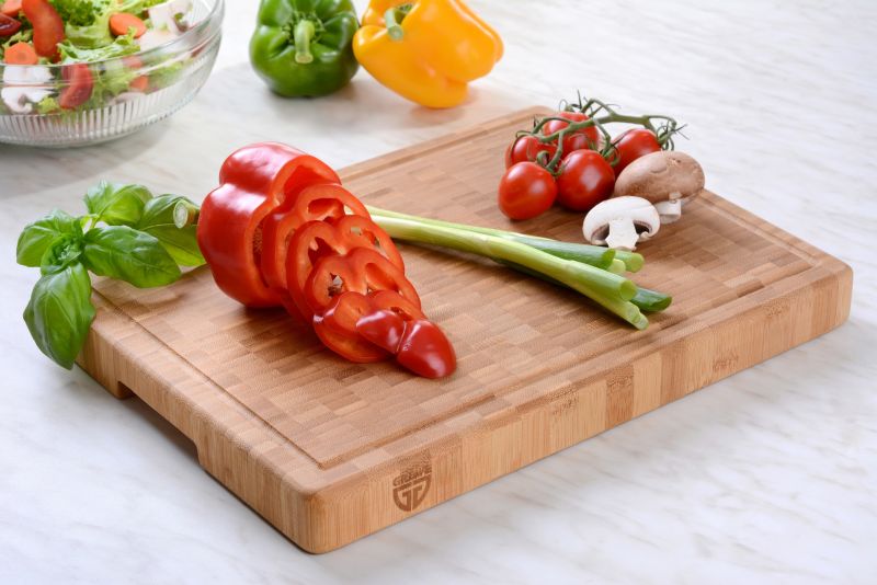 Bambus ist ein natürliches Material mit hervorragenden Eigenschaften. Es ist wesentlich klingenschonender als Glas- oder Steinunterlagen, was es zur perfekten Schneidunterlage macht. Zudem wirkt Bambus durch seinen hohen Natursäuregehalt antibakteriell und bietet so einen zusätzlichen Hygienevorteil.